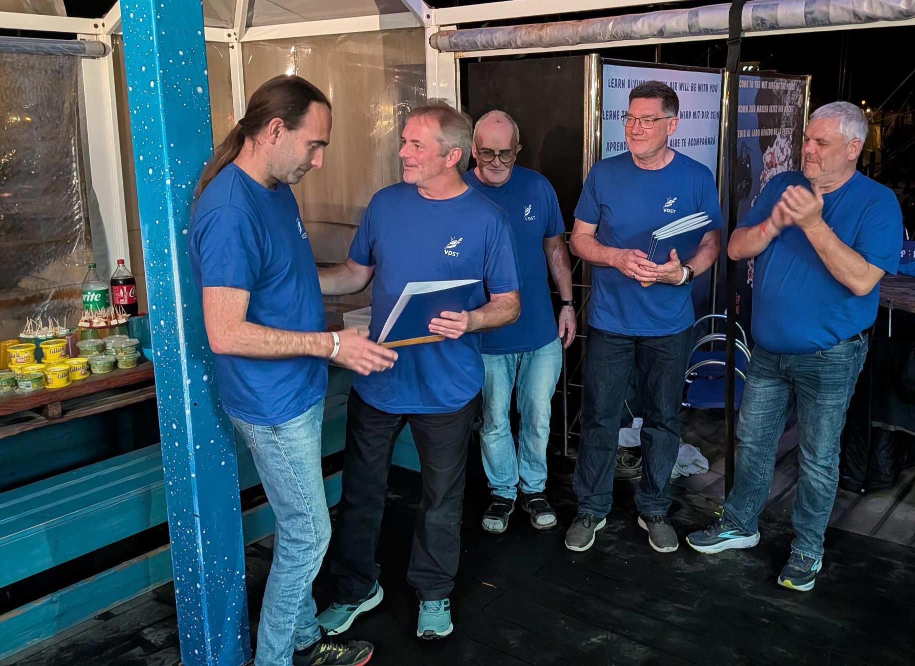 Ob bei Aufstiegen in Sternformation aus 40 Metern Tiefe, simulierten Out-Of-Air-Situationen, Rettungsübungen oder Aufgaben zur Gruppenführung – die Teilnehmerinnen und Teilnehmer mussten ihr Können unter Beweis stellen. Am Ende der Woche dürfen sich alle stolz als erfolgreiche Tauchlehrerinnen und Tauchlehrer bezeichnen. Oliver war einer der zehn Teilnehmenden, die den begehrten TL1 erringen wollten – und er hat es geschafft.