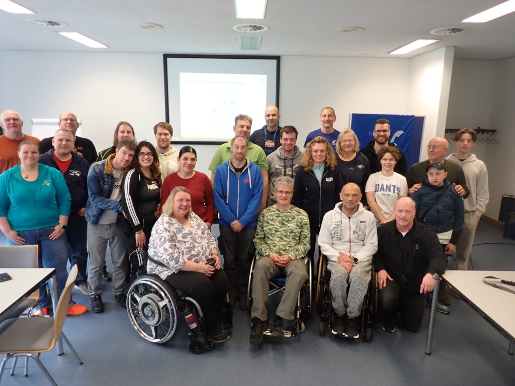 Zur Bildung des „Kompetenzzentrums Süd“ trafen sich in der letzten Märzhälfte Tauchbegeisterte aus NRW, Rheinland-Pfalz und Bayern unter der Schirmherrschaft des Hessischen Landesverbandes, um Tauchlehrerinnen und Tauchlehrer weiterzubilden. Hier wurde gefachsimpelt, und Taucherinnen und Taucher mit Behinderung stellten ihre Behinderungen und Hilfsmittel vor. Es wurde außerdem wahnsinnig viel getaucht – sowohl im Schwimmbad im Apnoetauchen sowie „unter Gerät“, mit Tauchflasche, Tarierjacket und Atemregler.